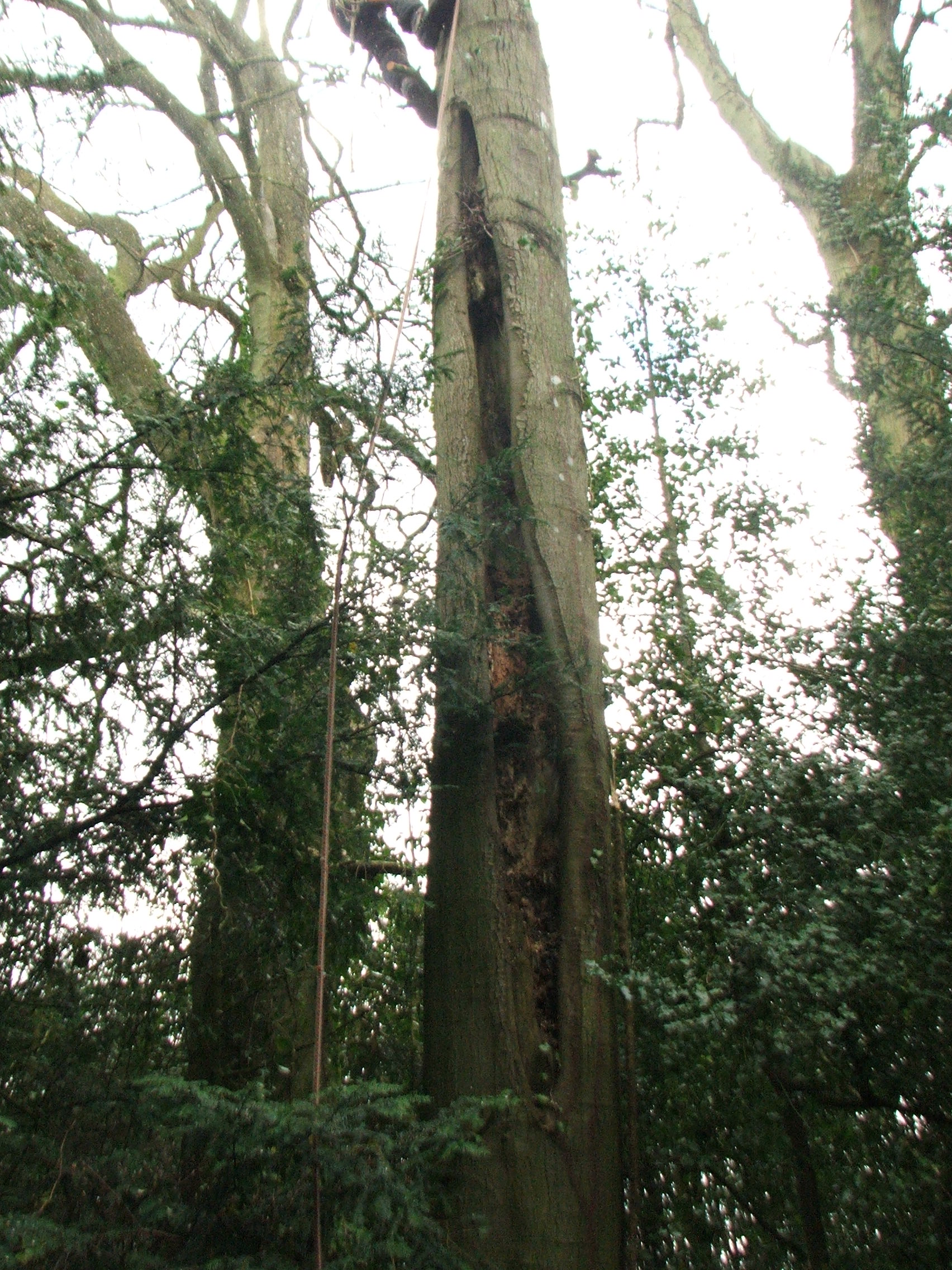 Damage to beech tree caused by an old lightening strike, Shalden, near Alton, 2009.